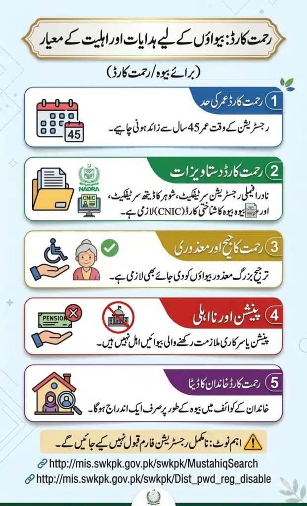 Understanding these requirements can help applicants determine whether they qualify for the Rahmat Card Punjab program.